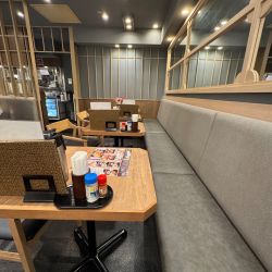 卓上にはメニュー、お水ポット、紙ナプキンが備えてあり調味料はや... 続きを見る